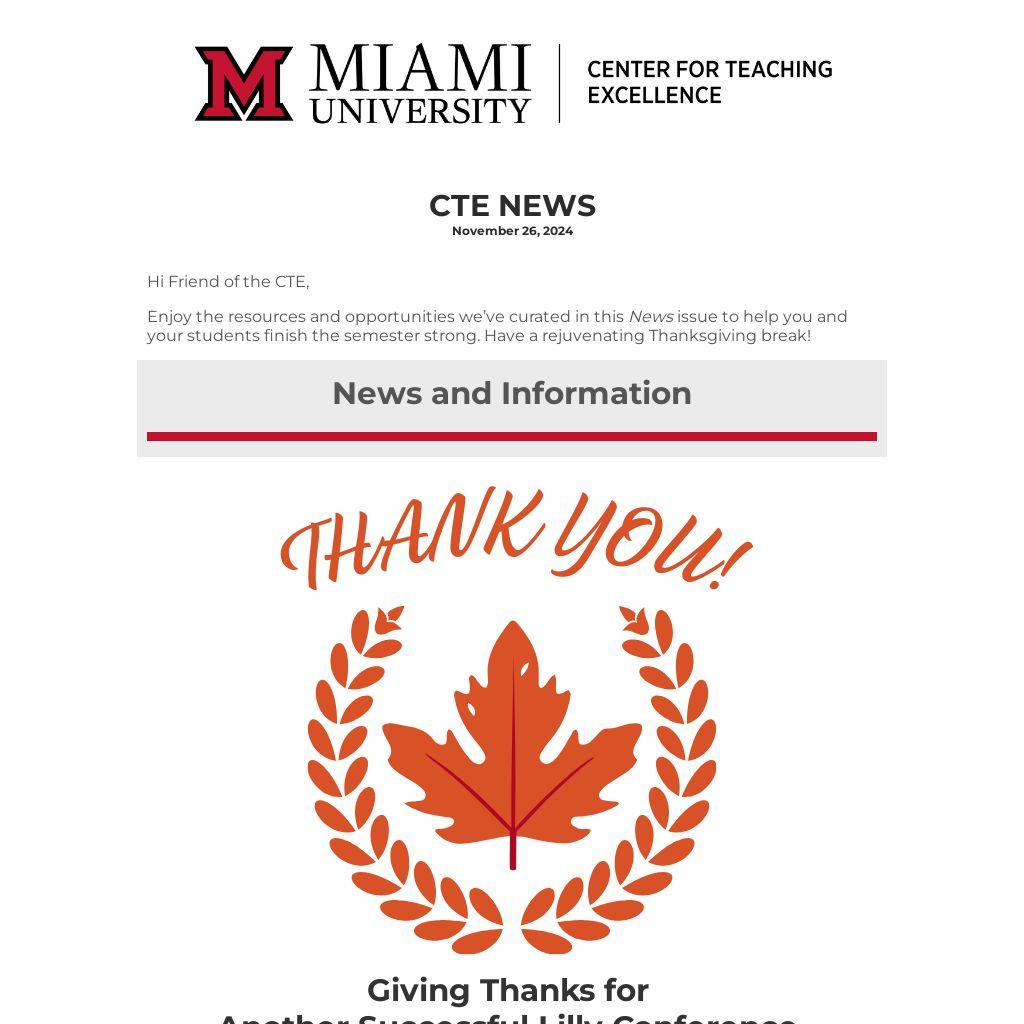 We thank and congratulate the Miami faculty, staff, and students who were presenters or contributors at the 43rd Original Lilly Conference on College Teaching: