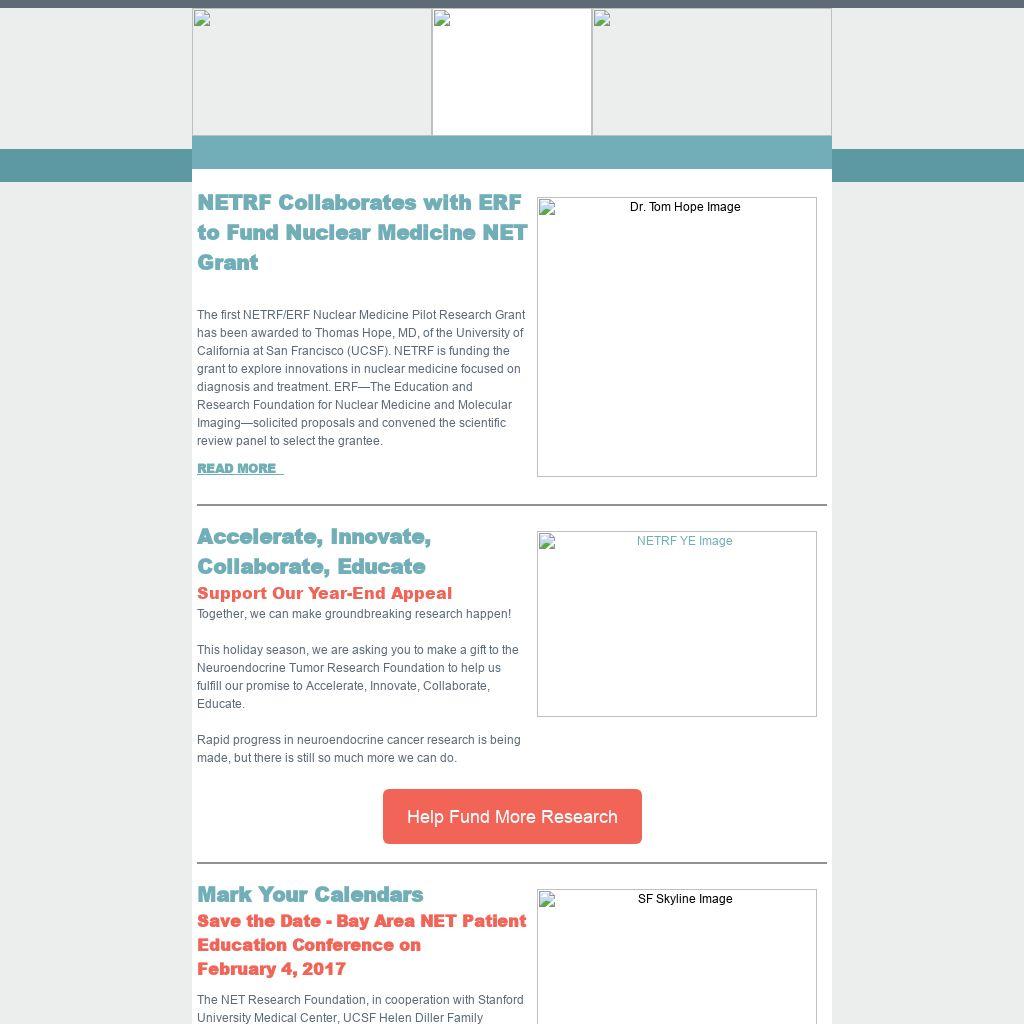 This holiday season, we are asking you to make a gift to the Neuroendocrine Tumor Research Foundation to help us fulfill our promise to Accelerate, Innovate, Collaborate, Educate.