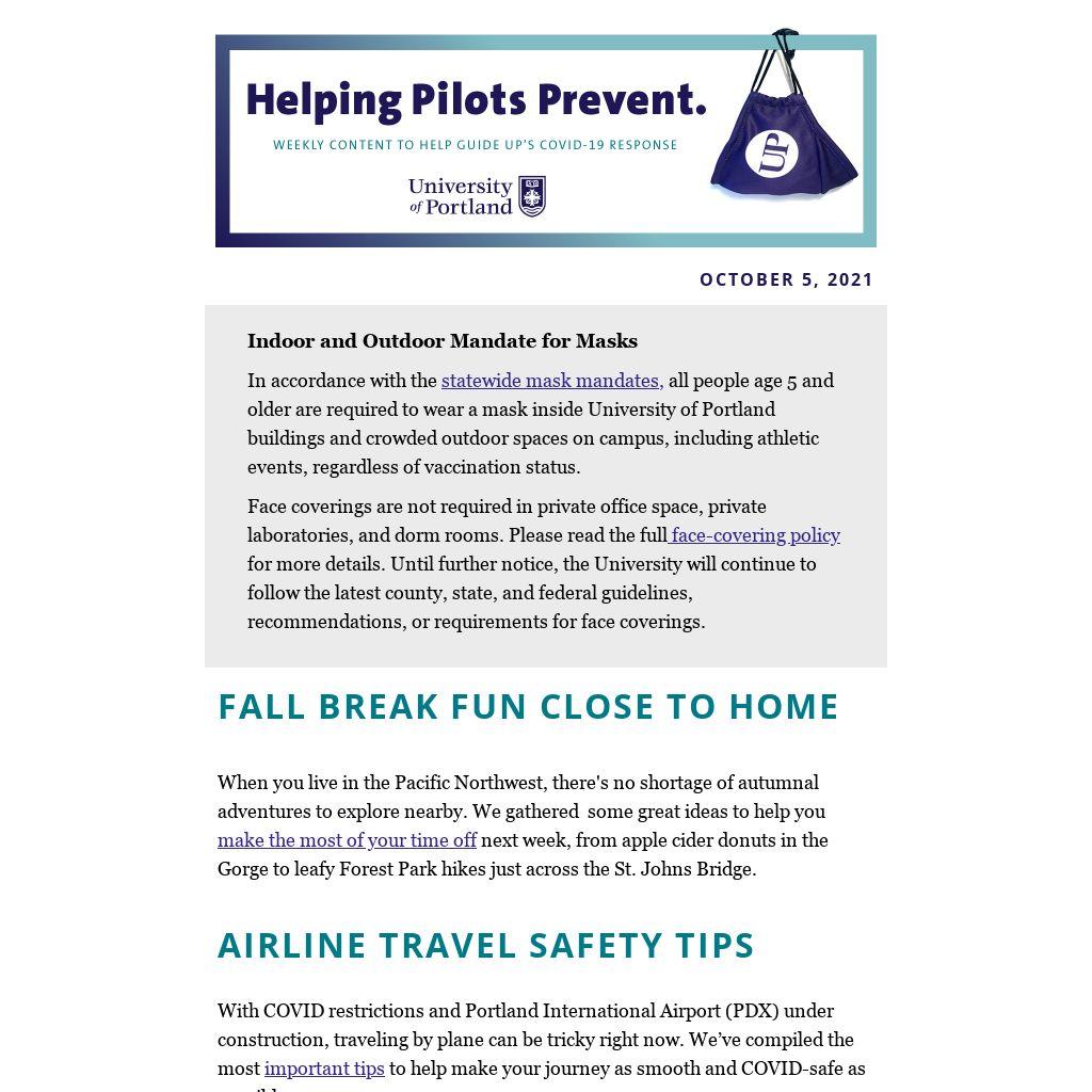 Helping Pilots Prevent Weekly Content to Help Guide UP's COVID-19 Response