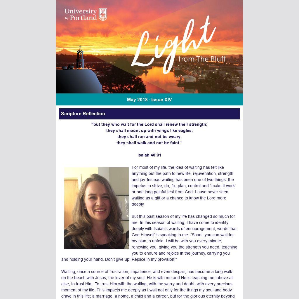 What is your favorite thing about UP? I love the students here at UP. The welcoming, fun, and meaningful interactions that I’ve had since I arrived here last July have been a fantastic way for me to begin my time here on The Bluff. I am excited and grateful to be here and serve at UP.