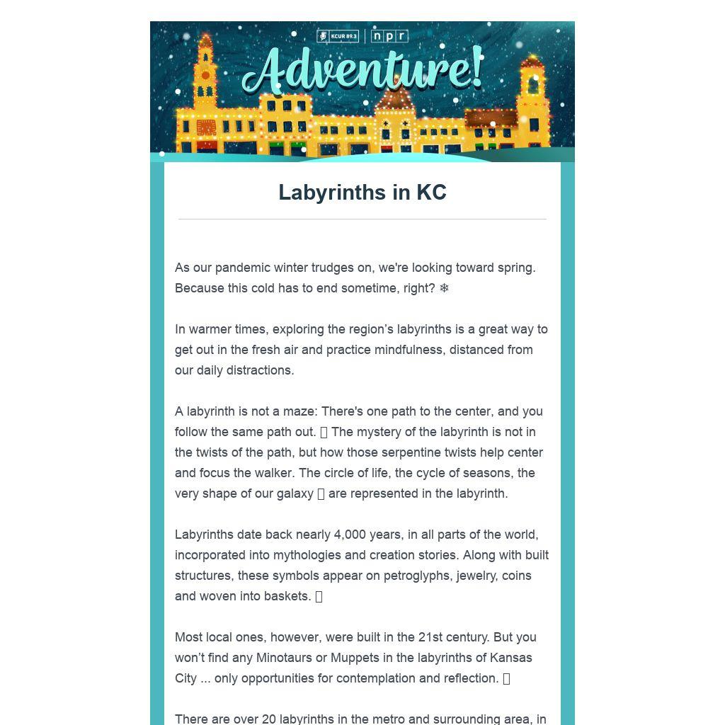 Most local ones, however, were built in the 21st century. But you won’t find any Minotaurs or Muppets in the labyrinths of Kansas City ... only opportunities for contemplation and reflection. 🧘
