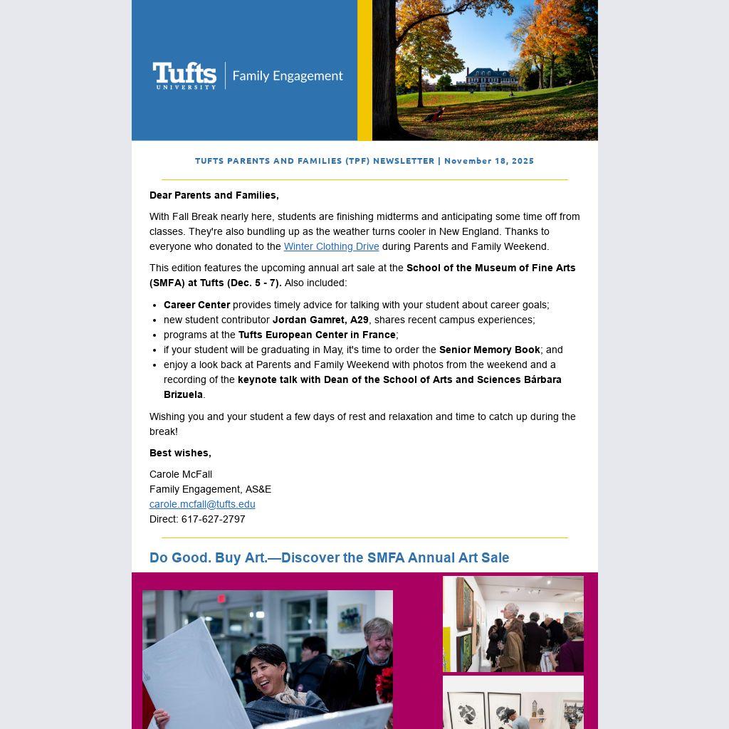 TUFTS PARENTS AND FAMILIES (TPF) NEWSLETTER | November 18, 2025