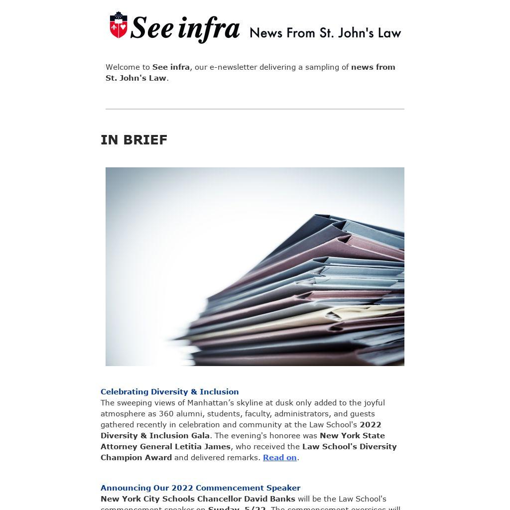 Welcome to See infra, our e-newsletter delivering a sampling of news from St. John's Law.
