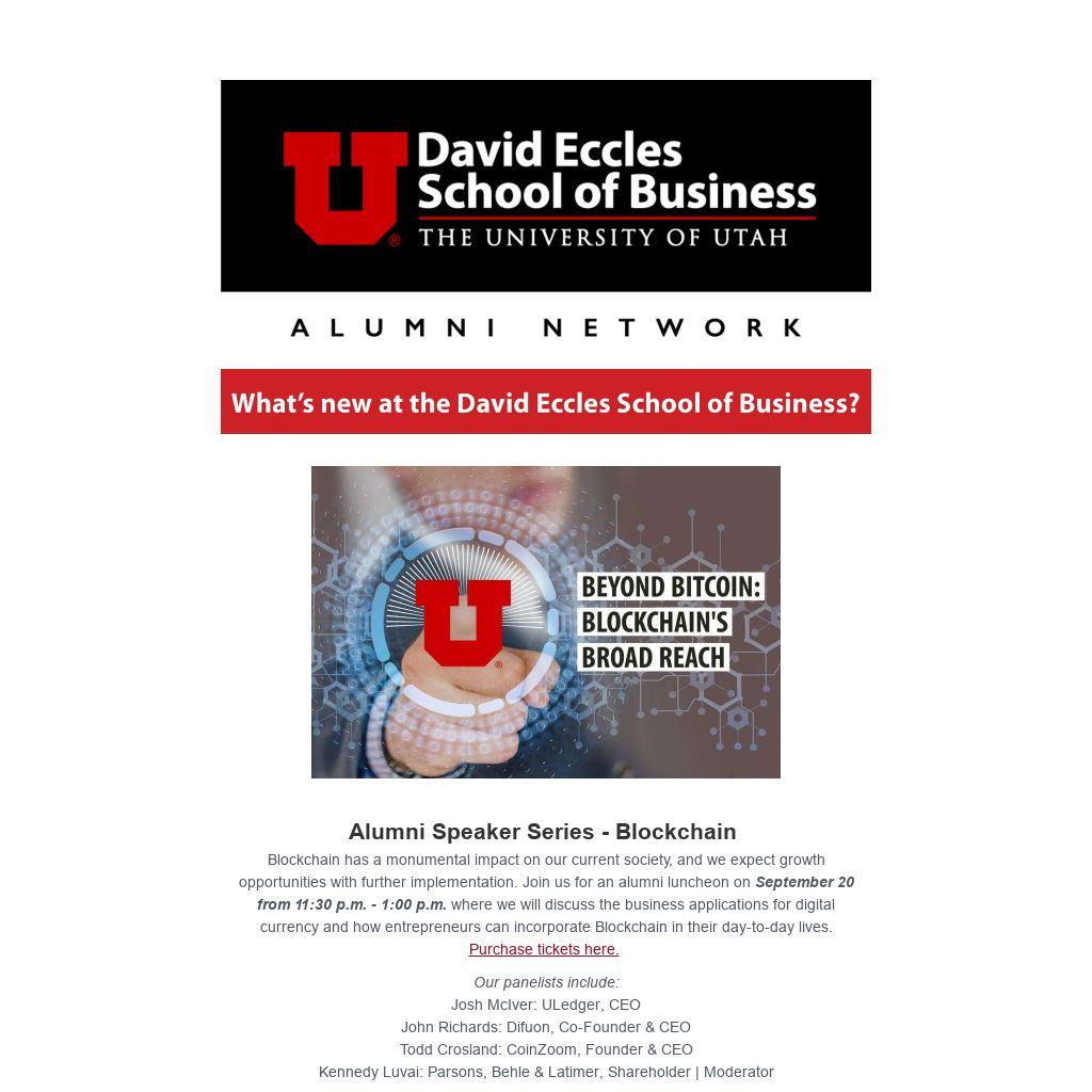 Blockchain has a monumental impact on our current society, and we expect growth opportunities with further implementation. Join us for an alumni luncheon on