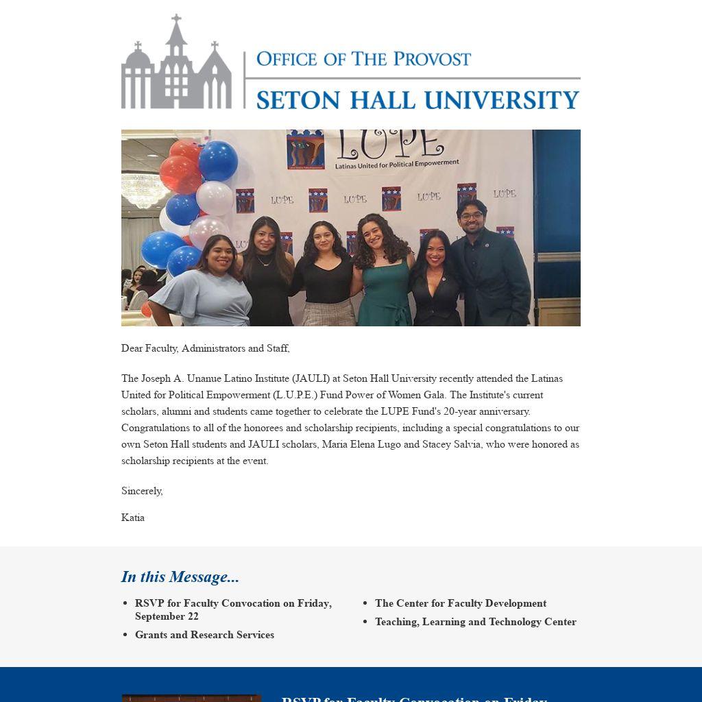 - RSVP for Faculty Convocation on Friday, September 22