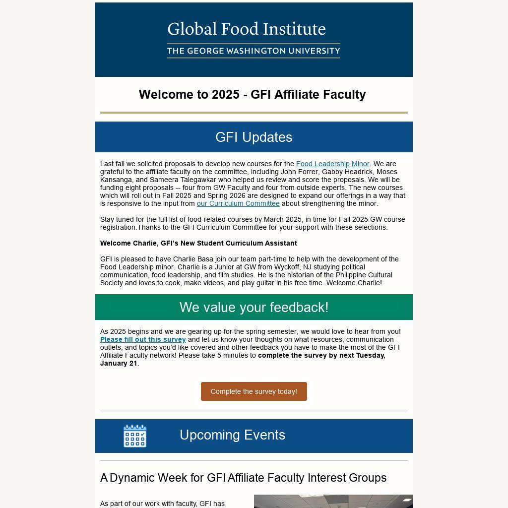 Stay tuned for the full list of food-related courses by March 2025, in time for Fall 2025 GW course registration.Thanks to the GFI Curriculum Committee for your support with these selections.