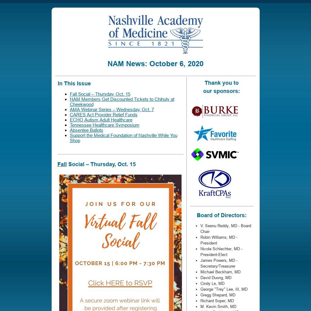 The Nashville Academy of Medicine is proud to partner with the Tennessee Medical Association and major insurance carriers on the 2020 Tennessee Healthcare Symposium, Nov. 10-12. This collaborative event will help practice managers, coders, billers, auditors and other medical office staff focus on efficiency and financial success.