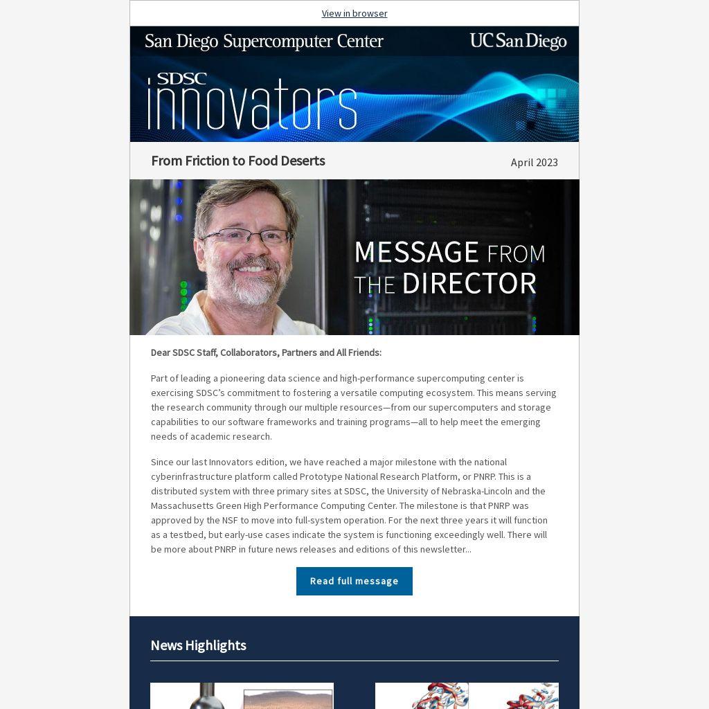 SDSC Innovators newsletter is published six times a year, every two months.