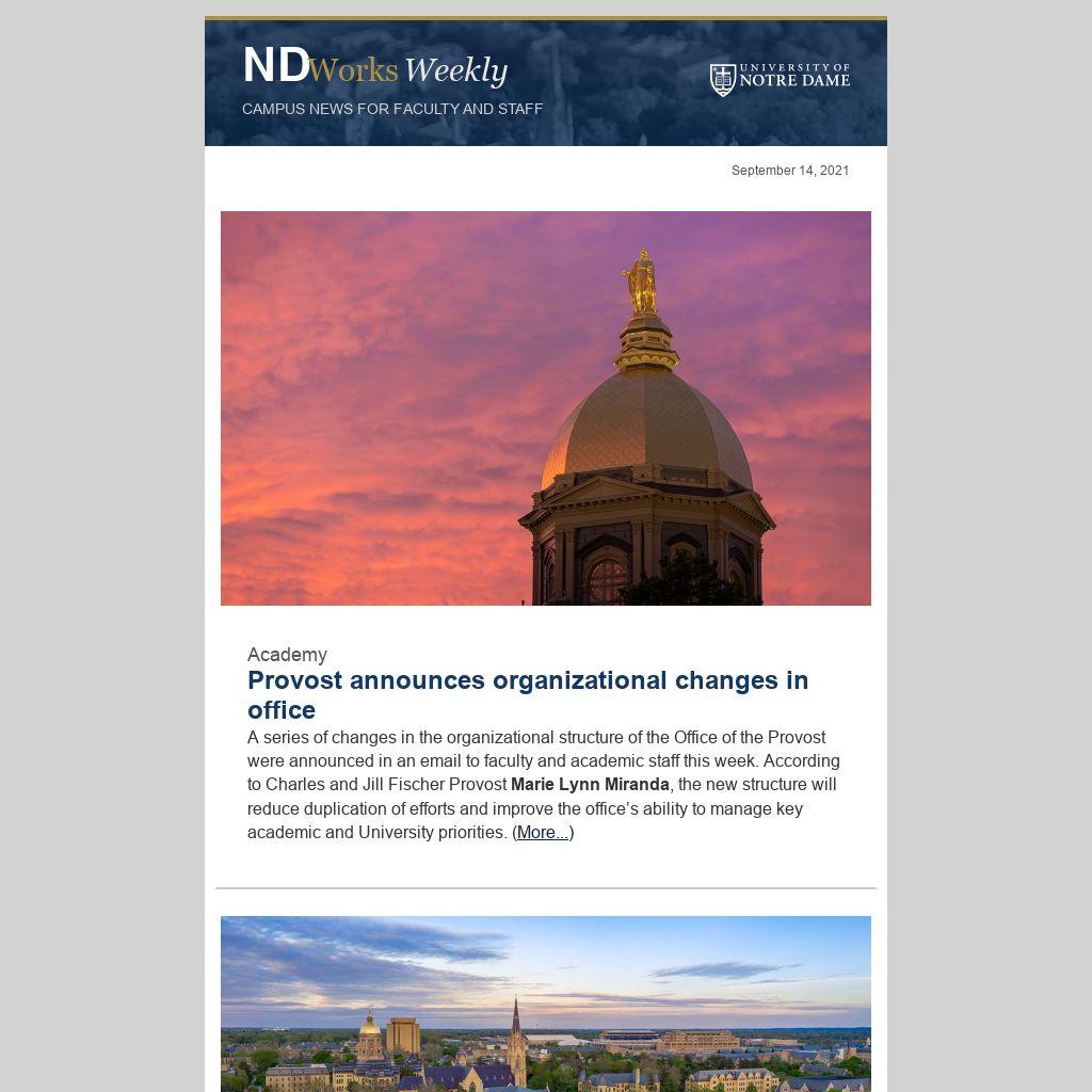 Campus was busy this past weekend with the first home football game of the season, 9/11 observances and ND Forum events. Fans, visitors, speakers, faculty, staff and students enjoyed favorable weather, good football and meaningful conversations.