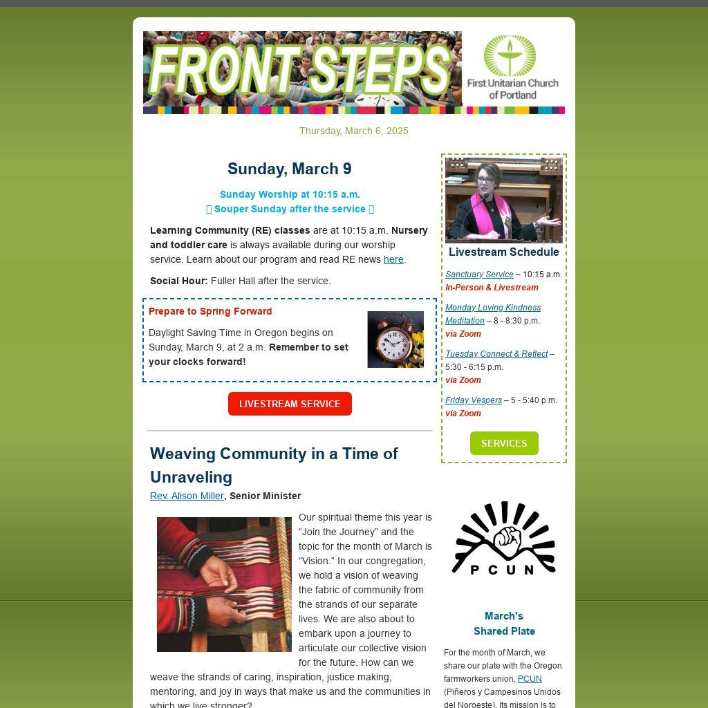 Dear Members and Friends of First Unitarian Portland,