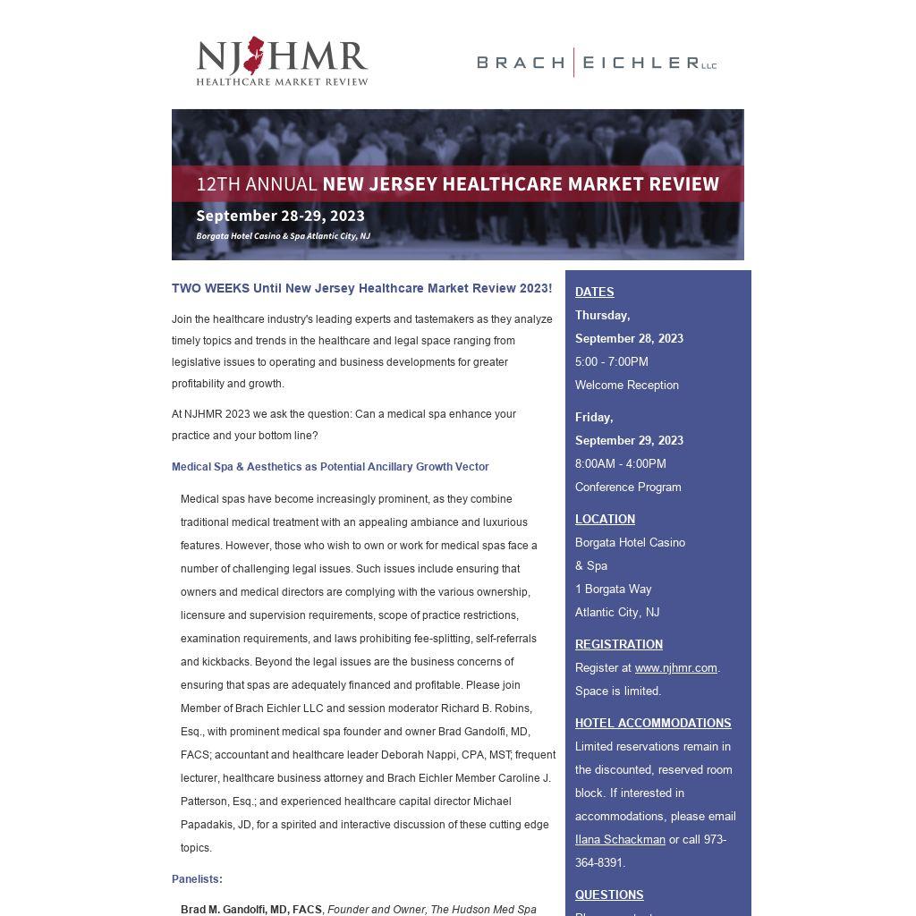 TWO WEEKS Until New Jersey Healthcare Market Review 2023!