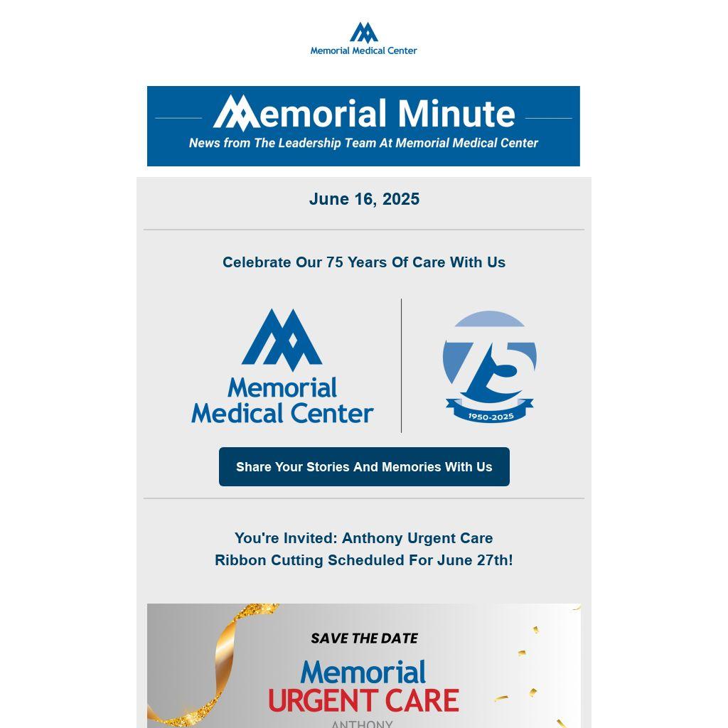 We are very pleased to welcome Adrian F. Larson, MBA, FACHE, as our hospital’s Chief Operating Officer. Adrian joined the Memorial executive leadership team in May and has already made a tremendous impact on our operations.