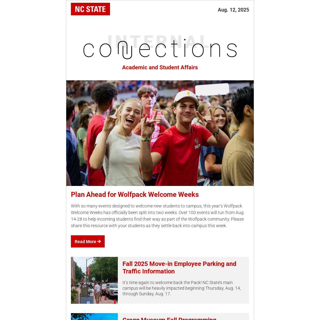 With so many events designed to welcome new students to campus, this year’s Wolfpack Welcome Weeks has officially been split into two weeks. Over 100 events will run from Aug. 14-28 to help incoming students find their way as part of the Wolfpack community. Please share this resource with your students as they settle back into campus this week.