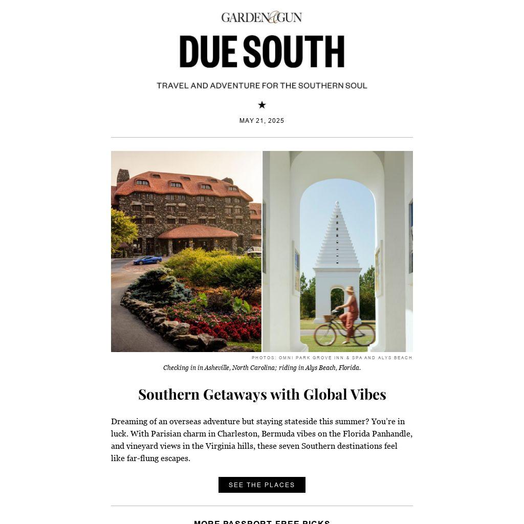 Dreaming of an overseas adventure but staying stateside this summer? You’re in luck. With Parisian charm in Charleston, Bermuda vibes on the Florida Panhandle, and vineyard views in the Virginia hills, these seven Southern destinations feel like far-flung escapes.