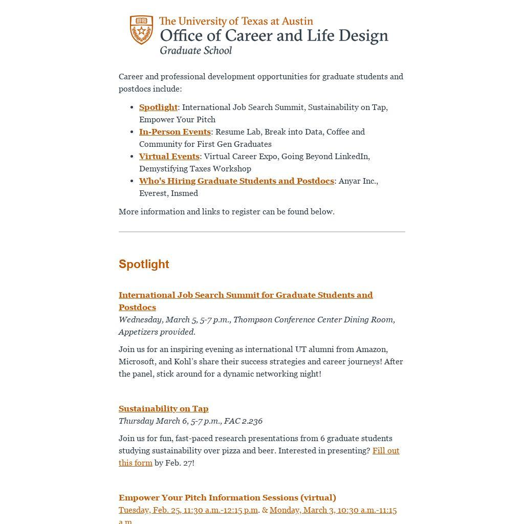 How to Make a Graduate Data Portfolio (HYBRID) Wednesday, Feb. 26, noon-1:15 p.m., FAC 2.236