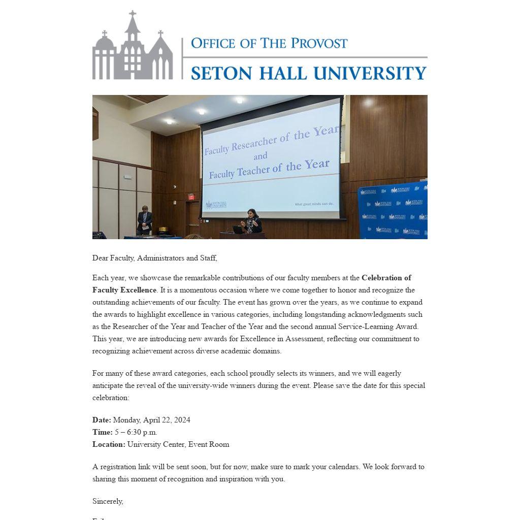 For many of these award categories, each school proudly selects its winners, and we will eagerly anticipate the reveal of the university-wide winners during the event. Please save the date for this special celebration: