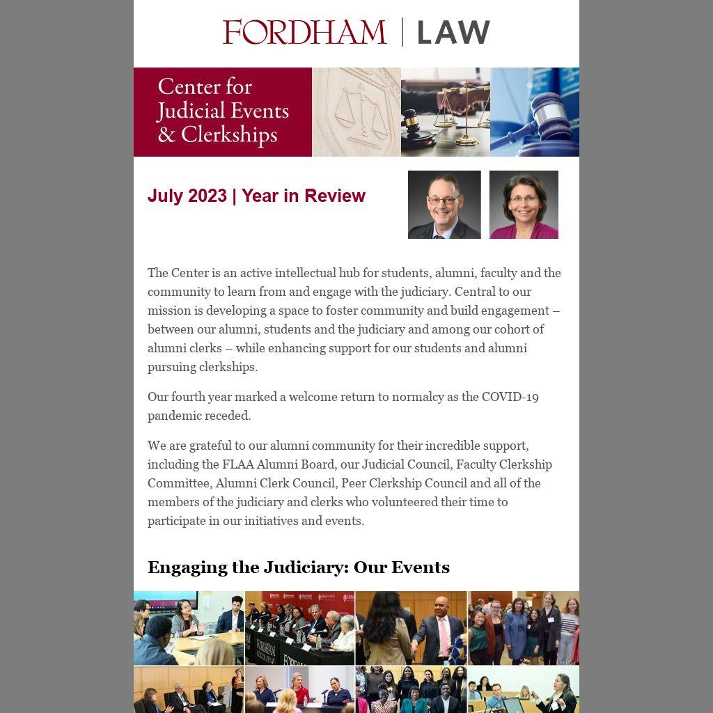 We are grateful to our alumni community for their incredible support, including the FLAA Alumni Board, our Judicial Council, Faculty Clerkship Committee, Alumni Clerk Council, Peer Clerkship Council and all of the members of the judiciary and clerks who volunteered their time to participate in our initiatives and events.