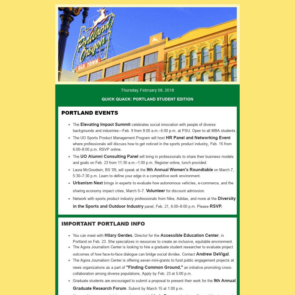 The UO Sports Product Management Program will host HR Panel and Networking Event where professionals will discuss how to get noticed in the sports product industry, Feb. 15 from 6:00–8:00 p.m. RSVP online.