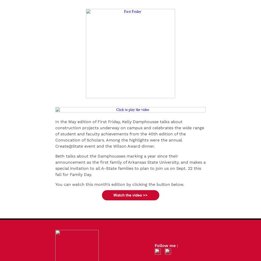 Beth talks about the Damphousses marking a year since their announcement as the first family of Arkansas State University, and makes a special invitation to all A-State families to plan to join us on Sept. 22 this fall for Family Day.