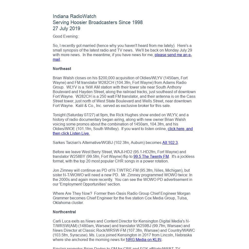 =============== Indiana RadioWatch ===============