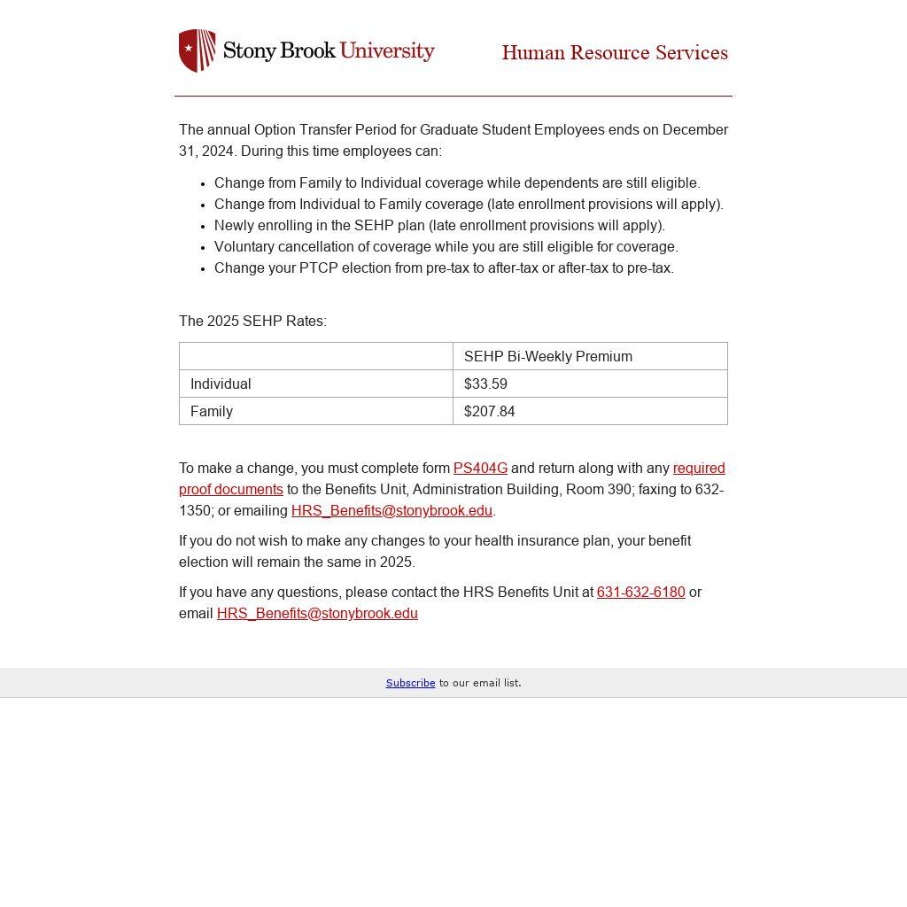 The annual Option Transfer Period for Graduate Student Employees ends on December 31, 2024. During this time employees can: