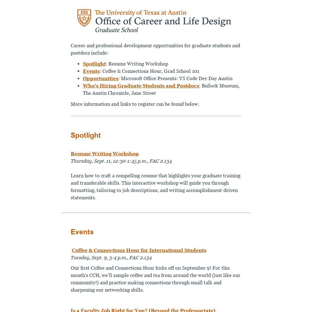 Resume Writing Workshop Thursday, Sept. 11, 12:30-1:45 p.m., FAC 2.134