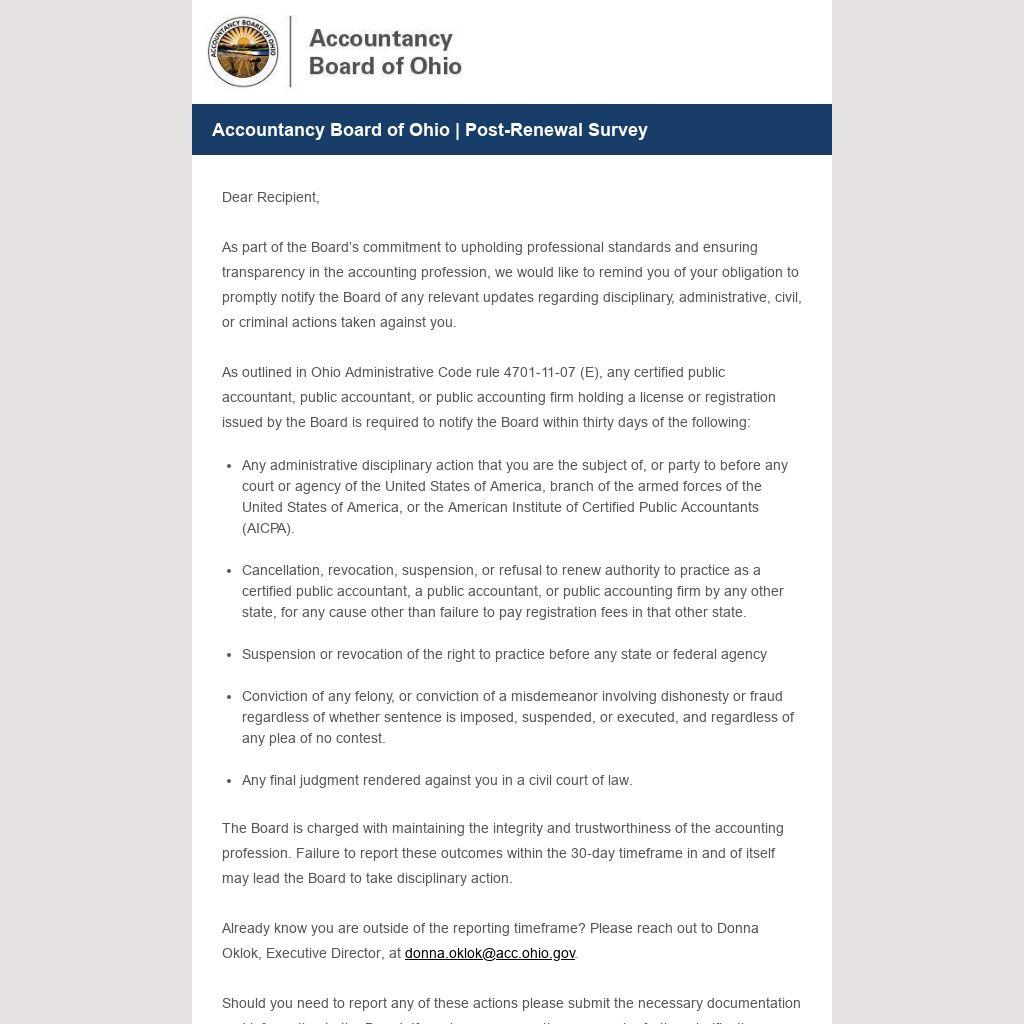 Accountancy Board of Ohio | Post-Renewal Survey