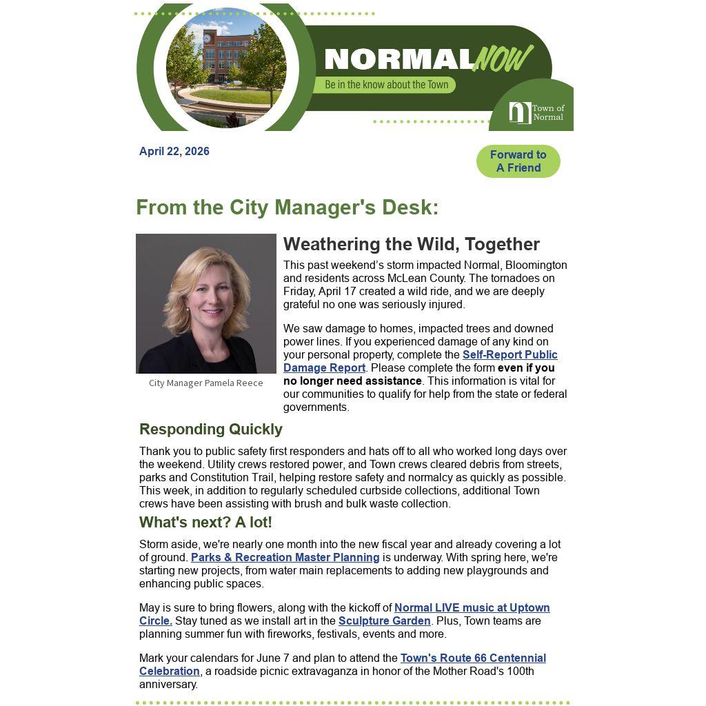 This past weekend’s storm impacted Normal, Bloomington and residents across McLean County. The tornadoes on Friday, April 17 created a wild ride, and we are deeply grateful no one was seriously injured.
