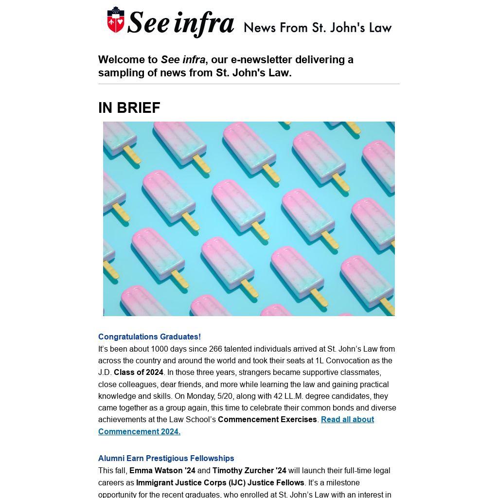 Welcome to See infra, our e-newsletter delivering a sampling of news from St. John's Law. |