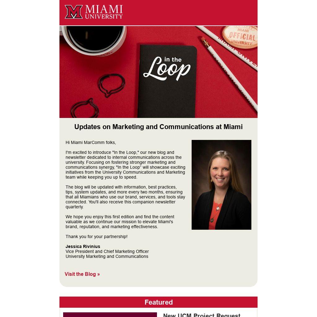 I'm excited to introduce "In the Loop," our new blog and newsletter dedicated to internal communications across the university. Focusing on fostering stronger marketing and communications synergy, "In the Loop” will showcase exciting initiatives from the University Communications and Marketing team while keeping you up to speed.