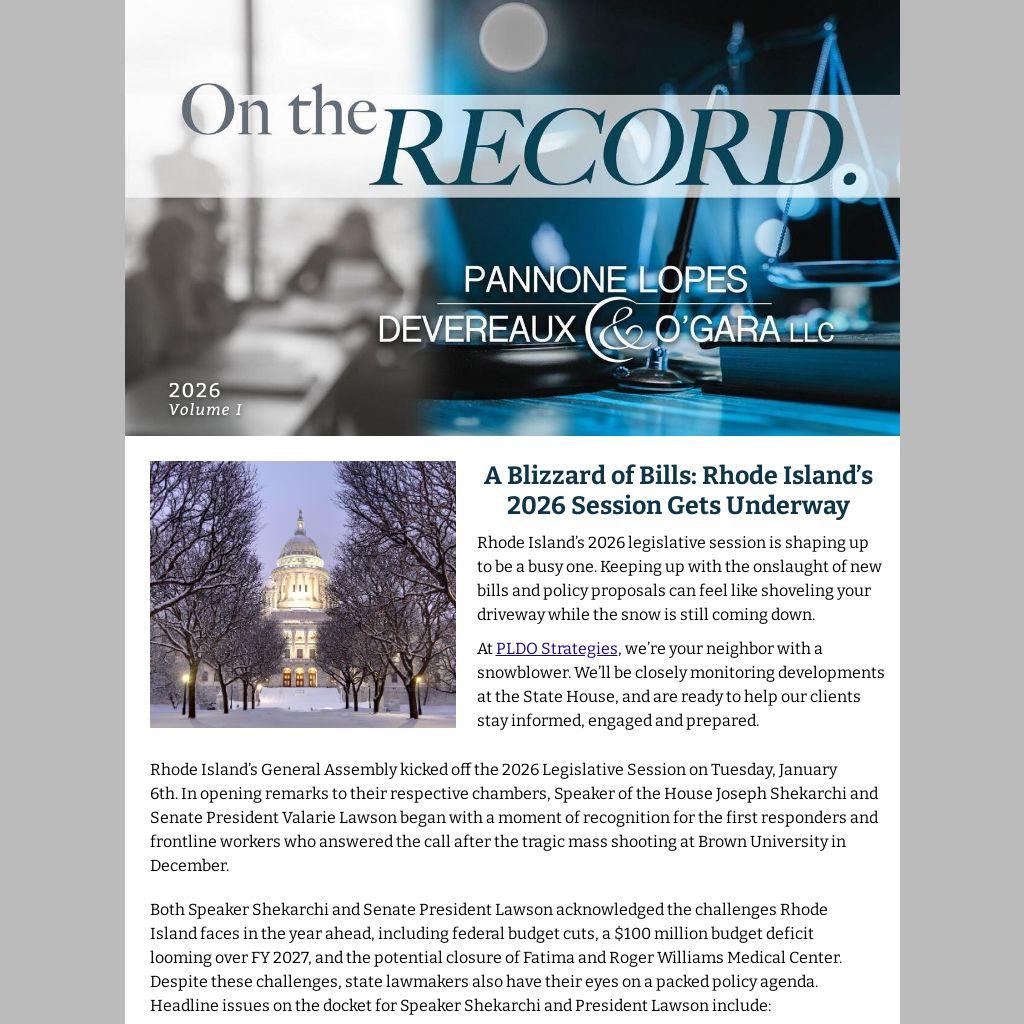 | A Blizzard of Bills: Rhode Island’s 2026 Session Gets Underway |