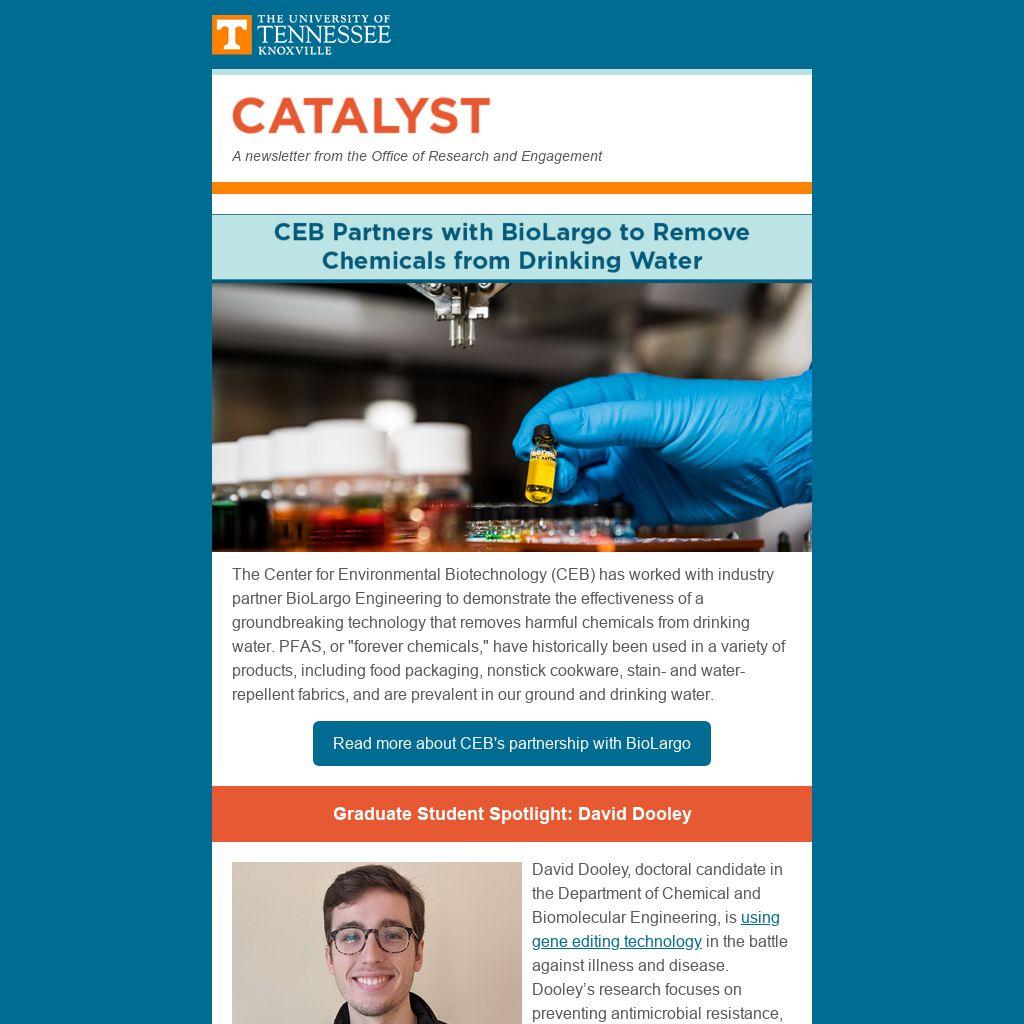 The Center for Environmental Biotechnology (CEB) has worked with industry partner BioLargo Engineering to demonstrate the effectiveness of a groundbreaking technology that removes harmful chemicals from drinking water. PFAS, or "forever chemicals," have historically been used in a variety of products, including food packaging, nonstick cookware, stain- and water-repellent fabrics, and are prevalent in our ground and drinking water.