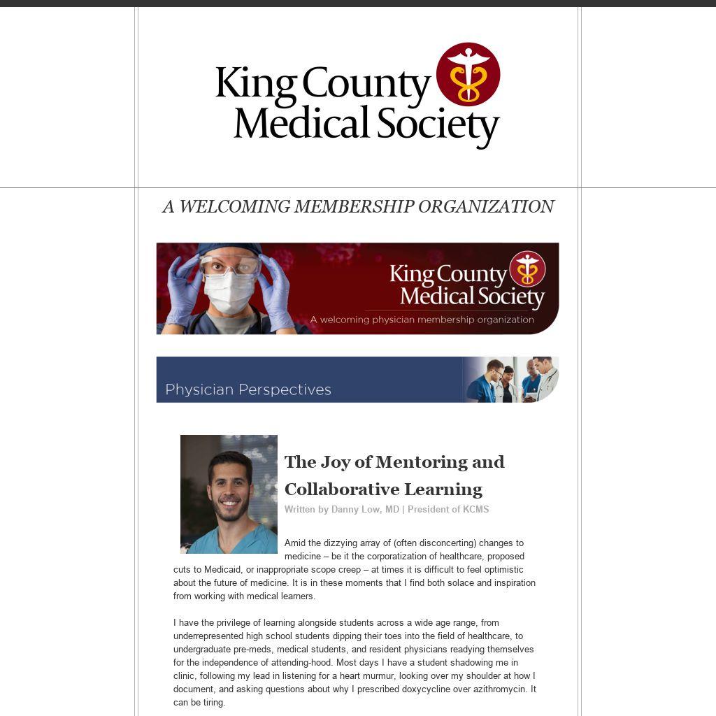 This past week I have had the immense privilege of reviewing applications for our annual KCMS Community Foundation Grants that financially support medical students across Washington State. To read the stories of the next generation of doctors is to recognize the promise of medicine. From students who have overcome homelessness to now lead programs combatting homelessness in Seattle, to folks who grew up in rural villages in Alaska who are now acting to reduce the rural-urban healthcare divide, to refugees who grew up in camps, not speaking English or attending school for years, who upon arrival to south King County became leaders in their communities, we have countless learners who are ready to positively change the landscape of medicine. I am lucky to interact with so many of them on a regular basis. I invite you to do the same.