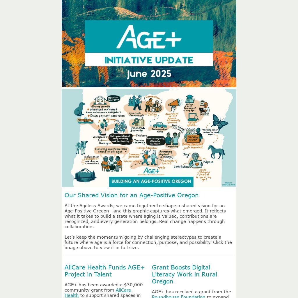 At the Ageless Awards, we came together to shape a shared vision for an Age-Positive Oregon—and this graphic captures what emerged. It reflects what it takes to build a state where aging is valued, contributions are recognized, and every generation belongs. Real change happens through collaboration.