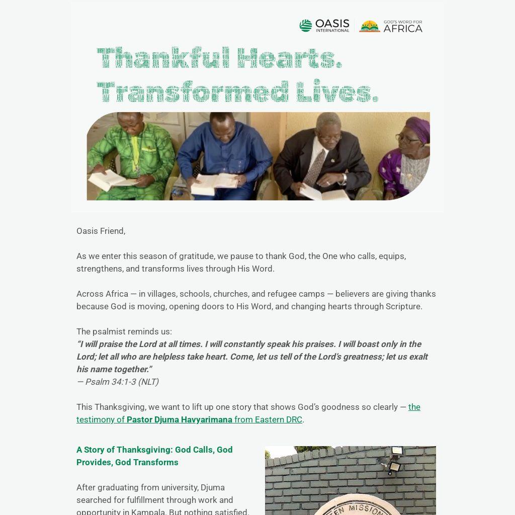 This Thanksgiving, we celebrate what God is doing — in Eastern DRC and throughout Africa: