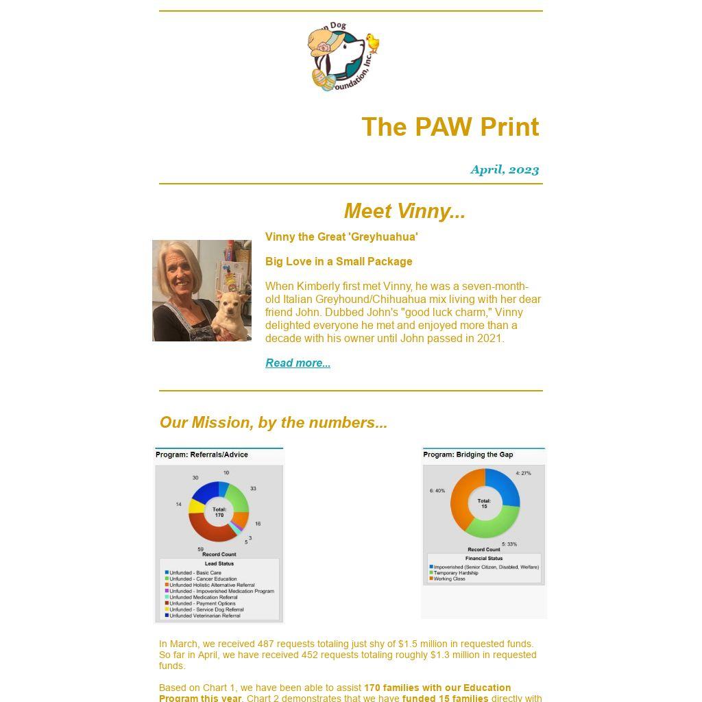 In March, we offered 8 Initial Vet Visit Approval Letters, but only one family took advantage.
