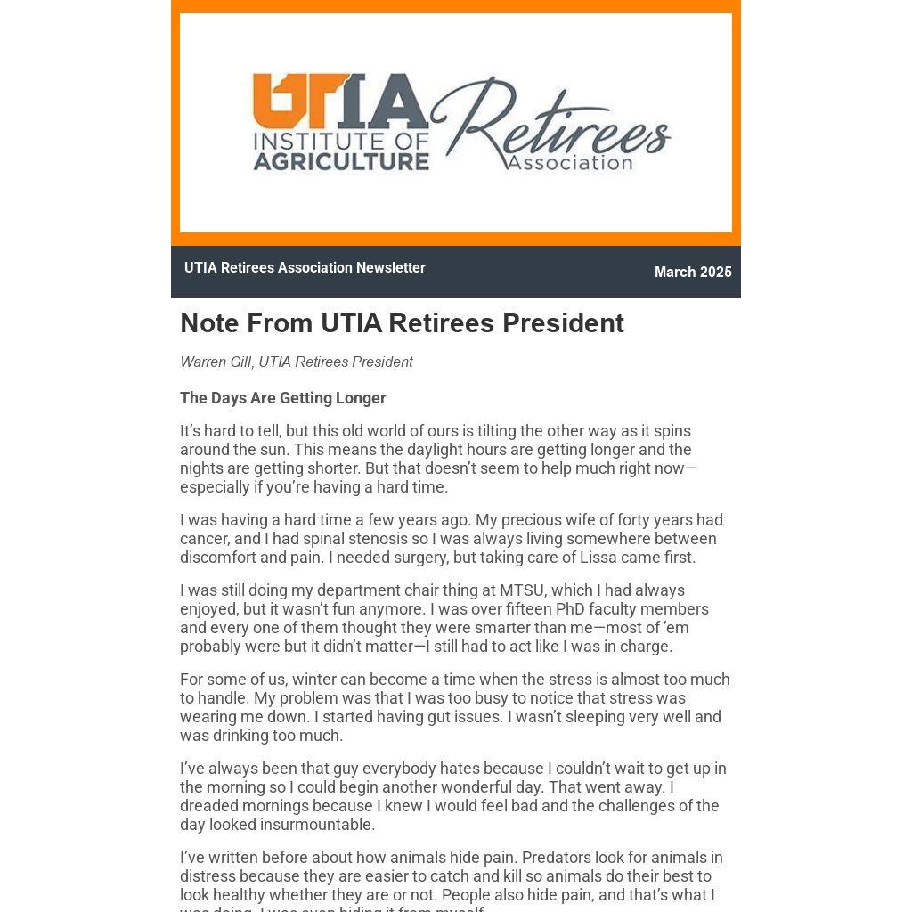 Note From UTIA Retirees President |