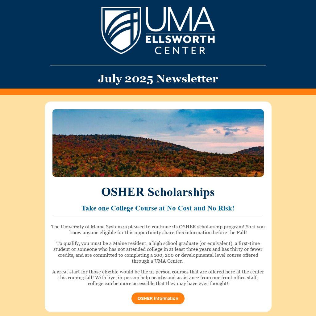 The University of Maine System is pleased to continue its OSHER scholarship program! So if you know anyone eligible for this opportunity share this information before the Fall!