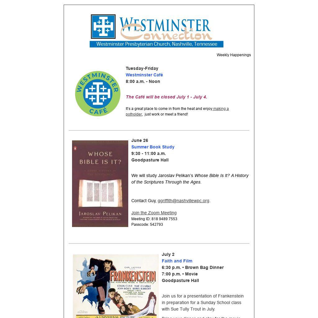 Join us for a presentation of Frankenstein in preparation for a Sunday School class with Sue Tully Trout in July.