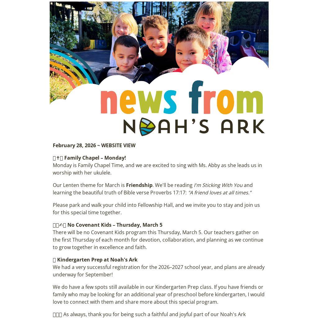 πππ As always, thank you for being such a faithful and joyful part of our Noah's Ark community.Β