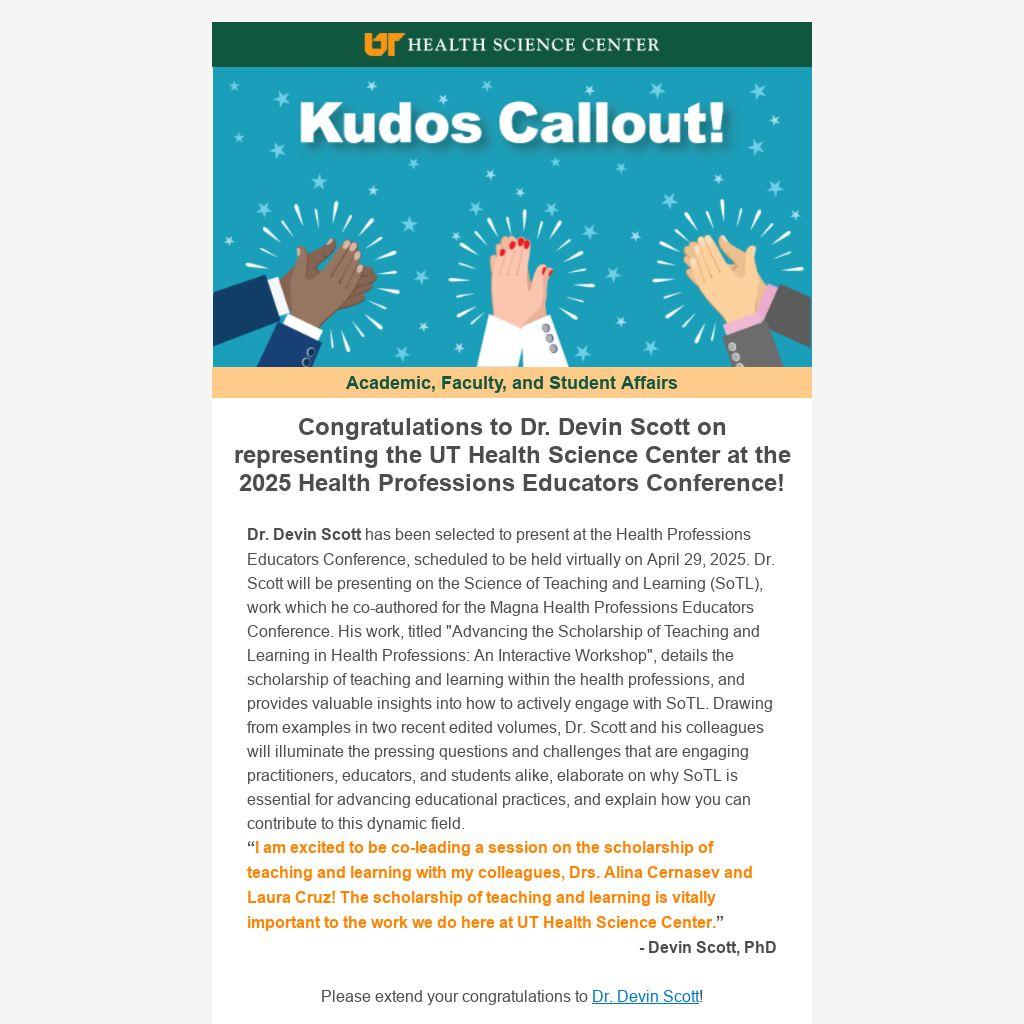 Congratulations to Dr. Devin Scott on representing the UT Health Science Center at the 2025 Health Professions Educators Conference! |