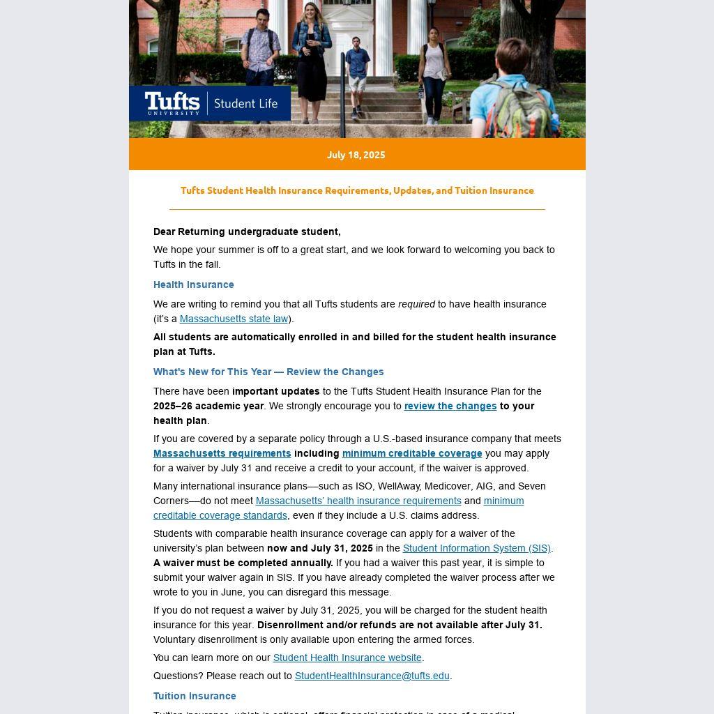 Questions? Please reach out to StudentHealthInsurance@tufts.edu.