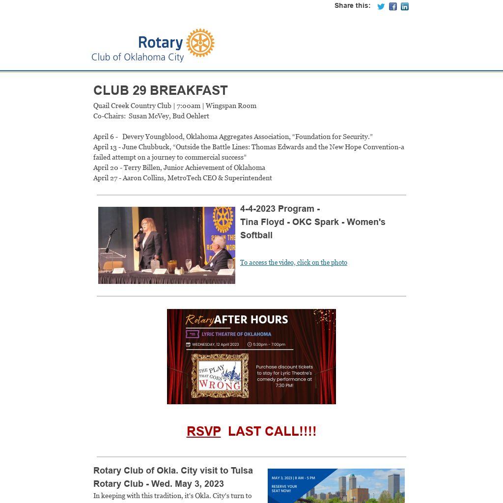 May 3, 2023 - Rotary OKC visits Rotary Tulsa