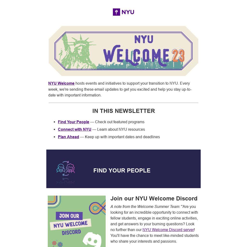 Plan to be on campus for orientation and NYU Welcome events by August 26.Â