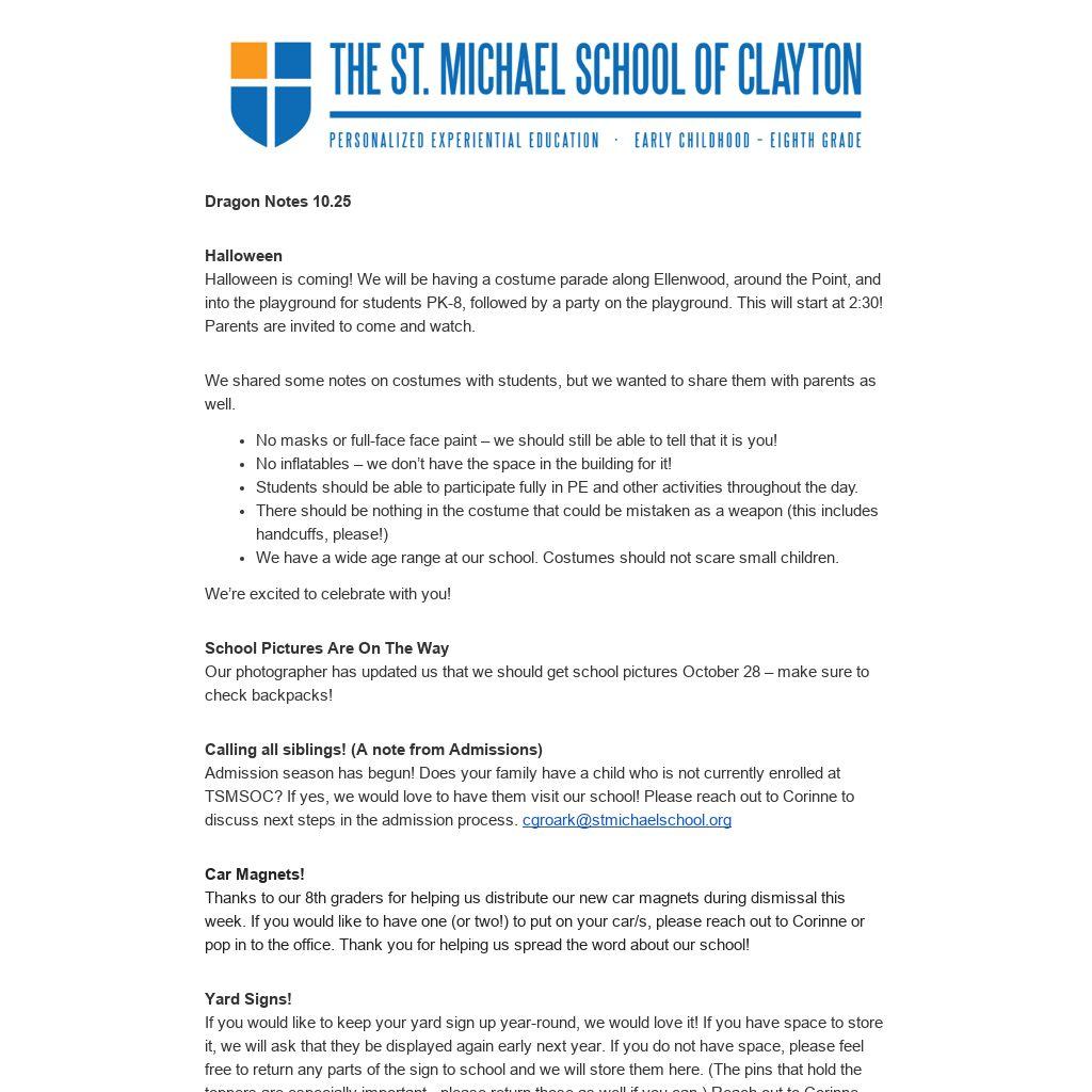 Admission season has begun! Does your family have a child who is not currently enrolled at TSMSOC? If yes, we would love to have them visit our school! Please reach out to Corinne to discuss next steps in the admission process. cgroark@stmichaelschool.org