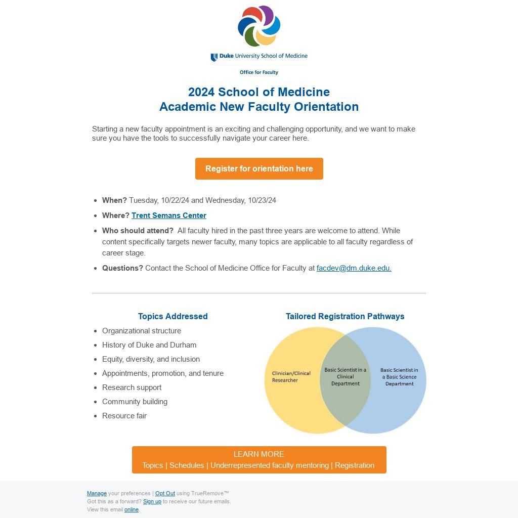 - Questions? Contact the School of Medicine Office for Faculty at facdev@dm.duke.edu.
