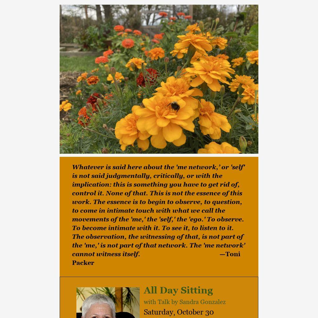 All Day Sitting with Talk by Sandra Gonzalez Saturday, October 30
