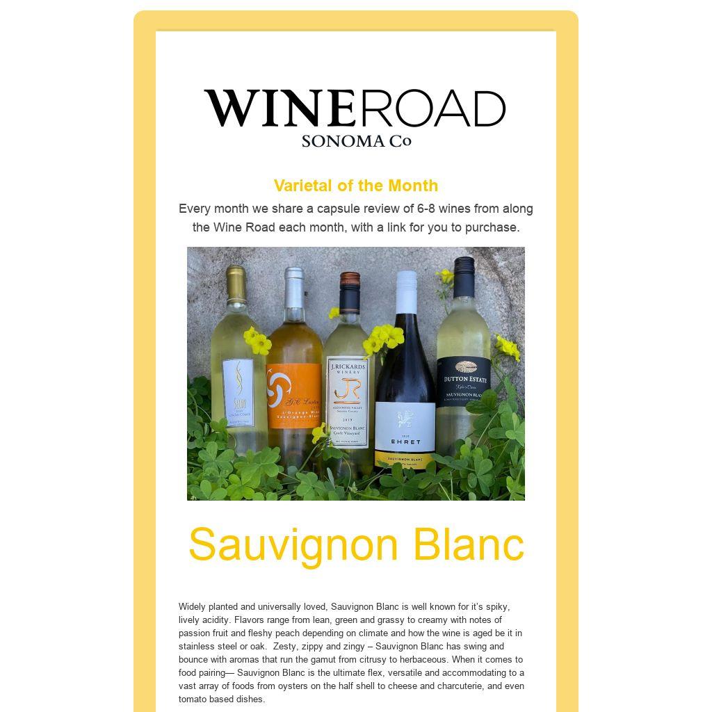 | Varietal of the Month Every month we share a capsule review of 6-8 wines from along the Wine Road each month, with a link for you to purchase.