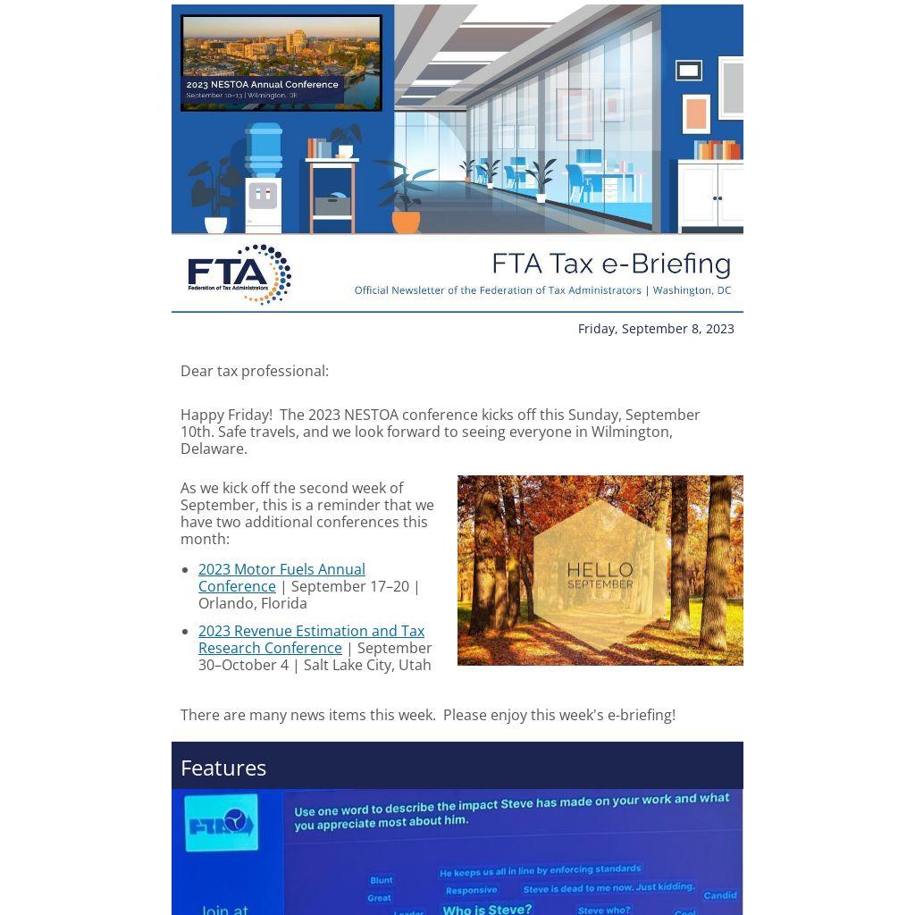 Happy Friday! The 2023 NESTOA conference kicks off this Sunday, September 10th. Safe travels, and we look forward to seeing everyone in Wilmington, Delaware.