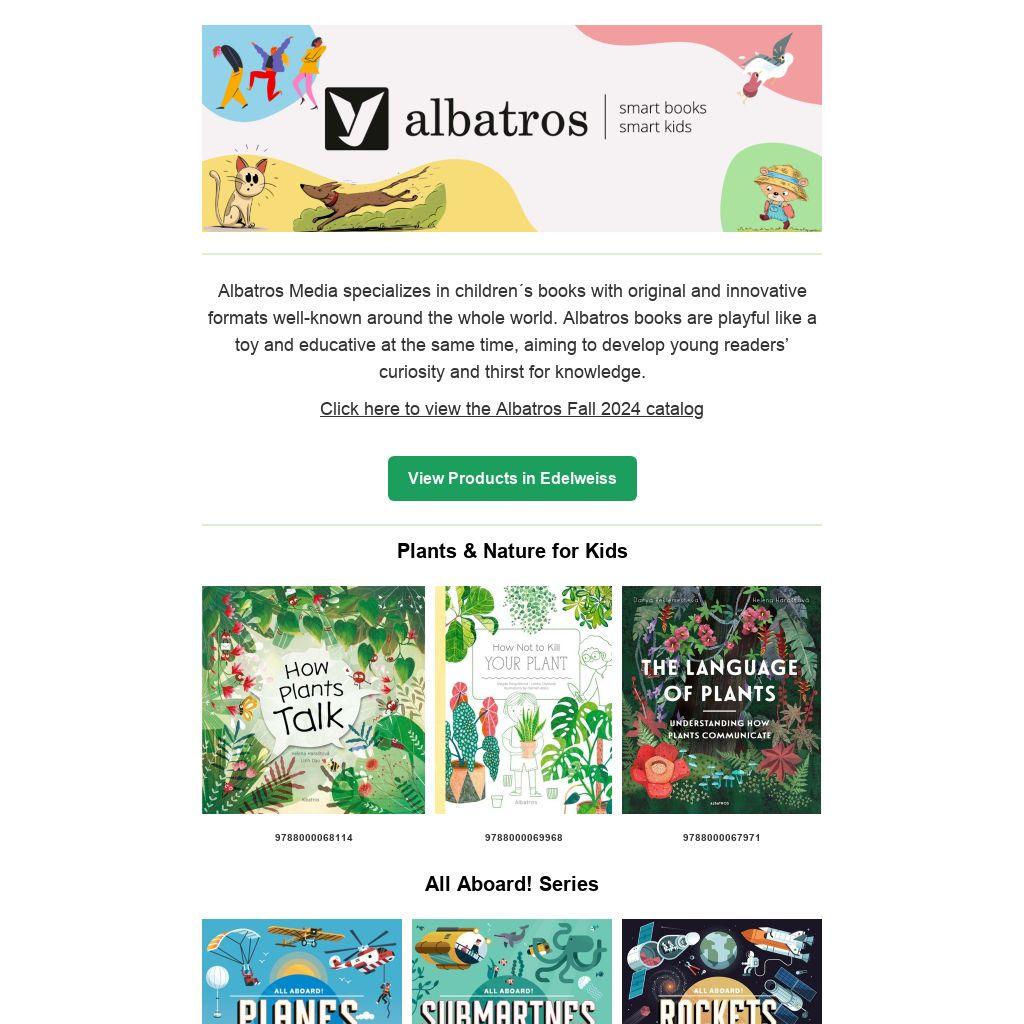 Albatros Media specializes in children´s books with original and innovative formats well-known around the whole world. Albatros books are playful like a toy and educative at the same time, aiming to develop young readers’ curiosity and thirst for knowledge.